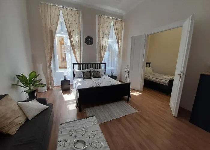 Das 48 m² große Dohany Central Apartment Budapest befindet sich im Stadtteil Badenstedt, nur 6 Fußminuten von der Ungarischen Staatsoper entfernt. Die Gäste können den WLAN sowohl für geschäftliche als auch für private Zwecke nutzen.